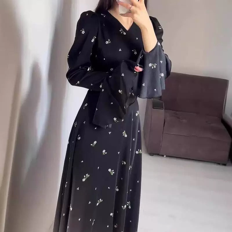 Blütenkleid in Schwarz