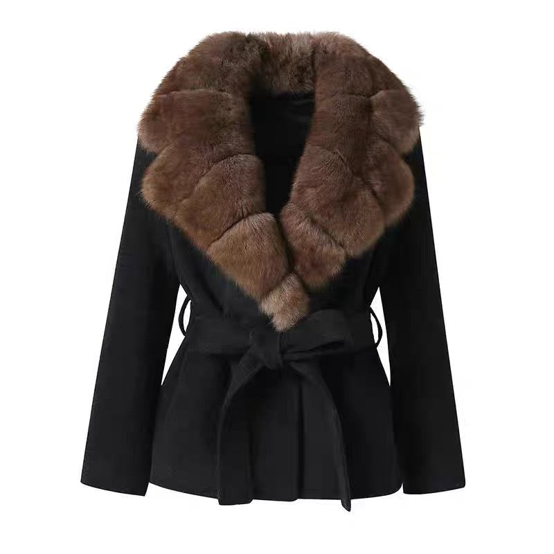 • Eleganter Mantel mit breitem Fellkragen