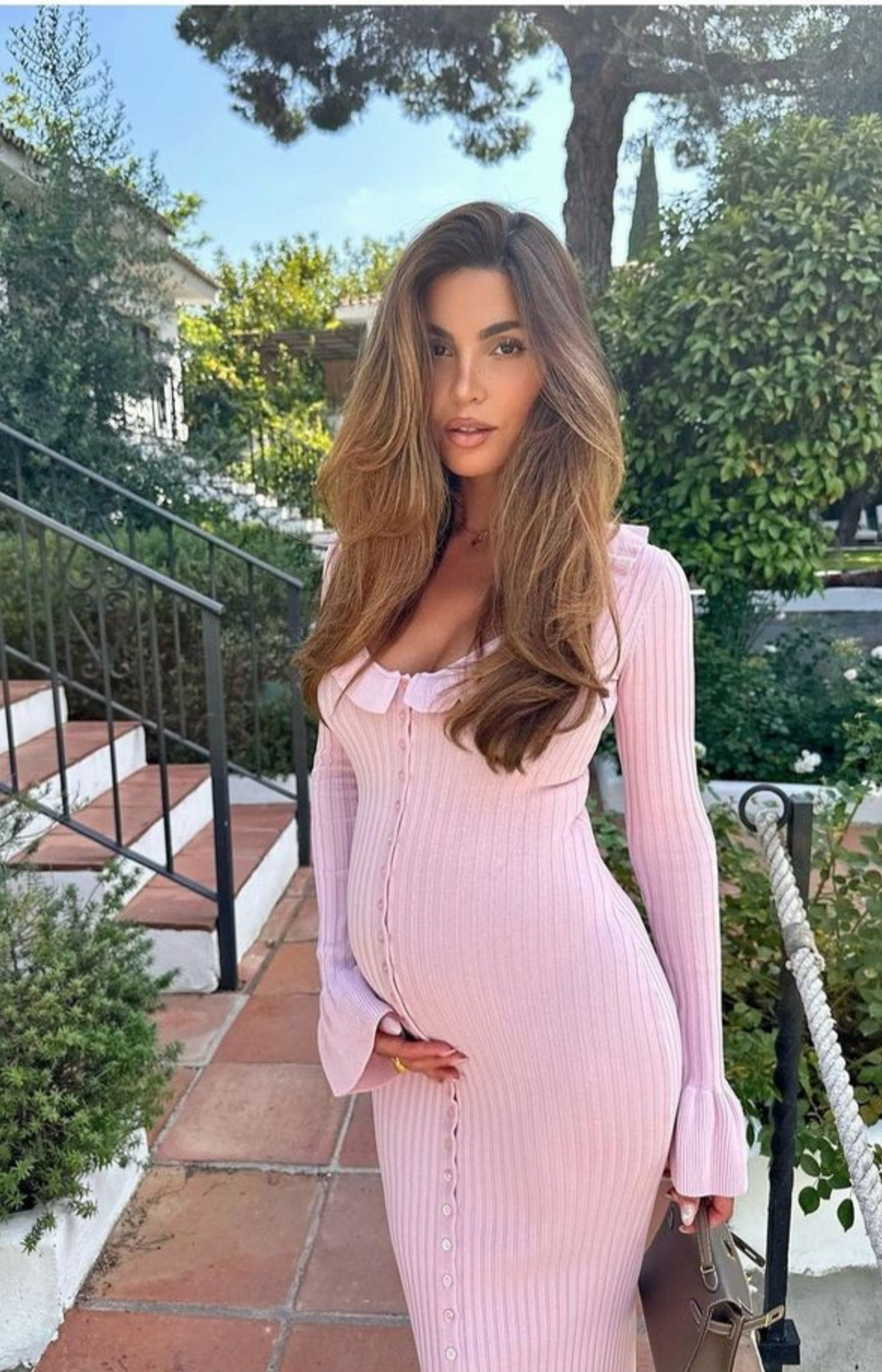 Figurnahes, geripptes Maxikleid mit langen Ärmeln