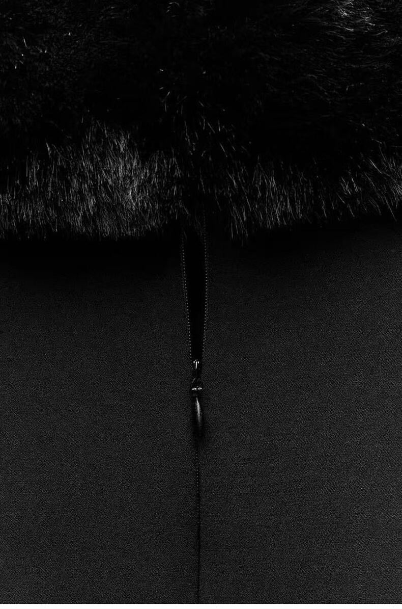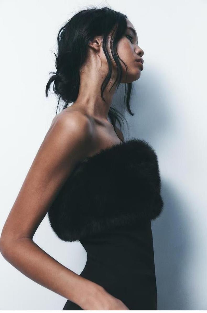 Schwarzes Abendkleid mit Kunstfell