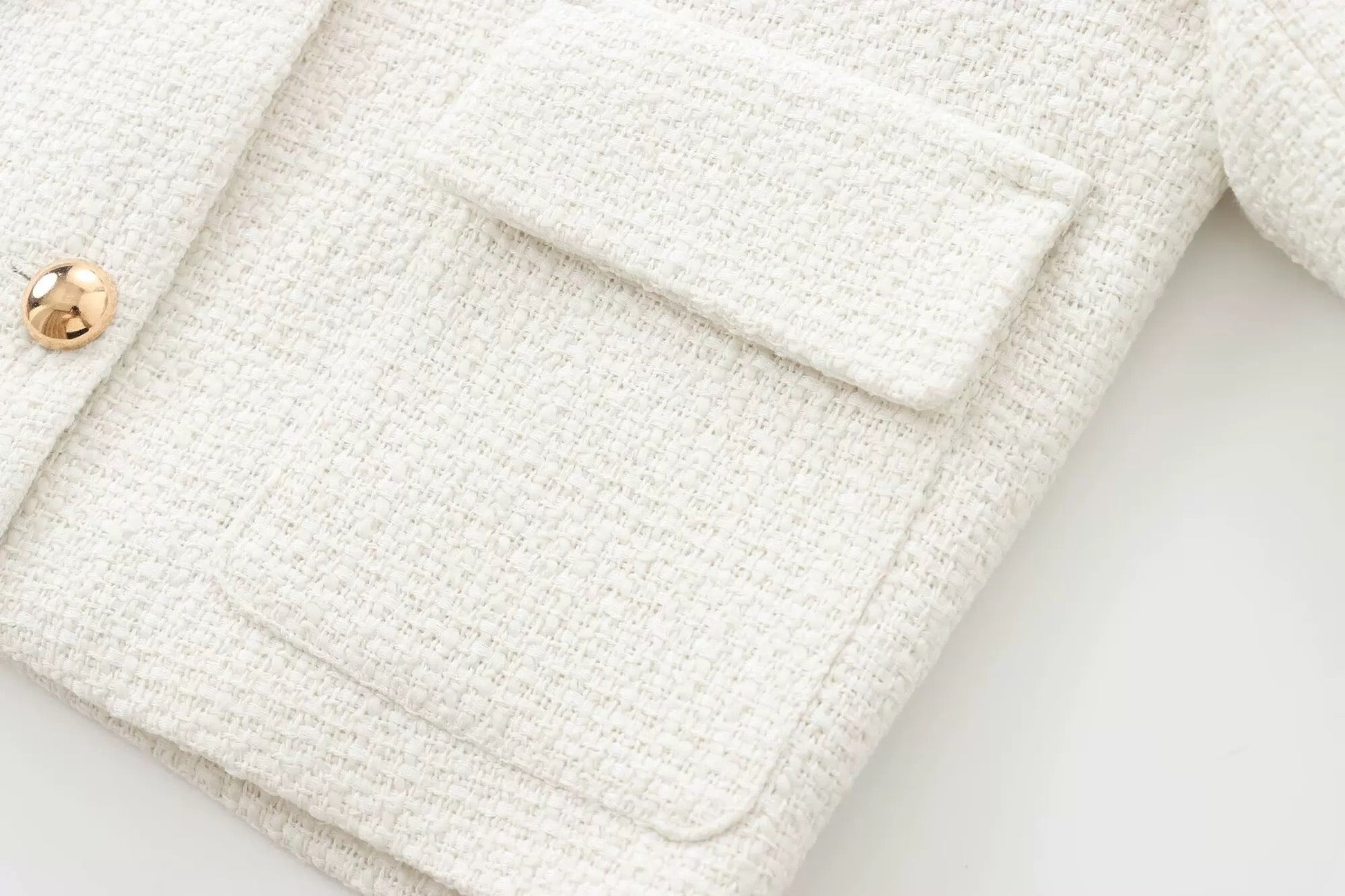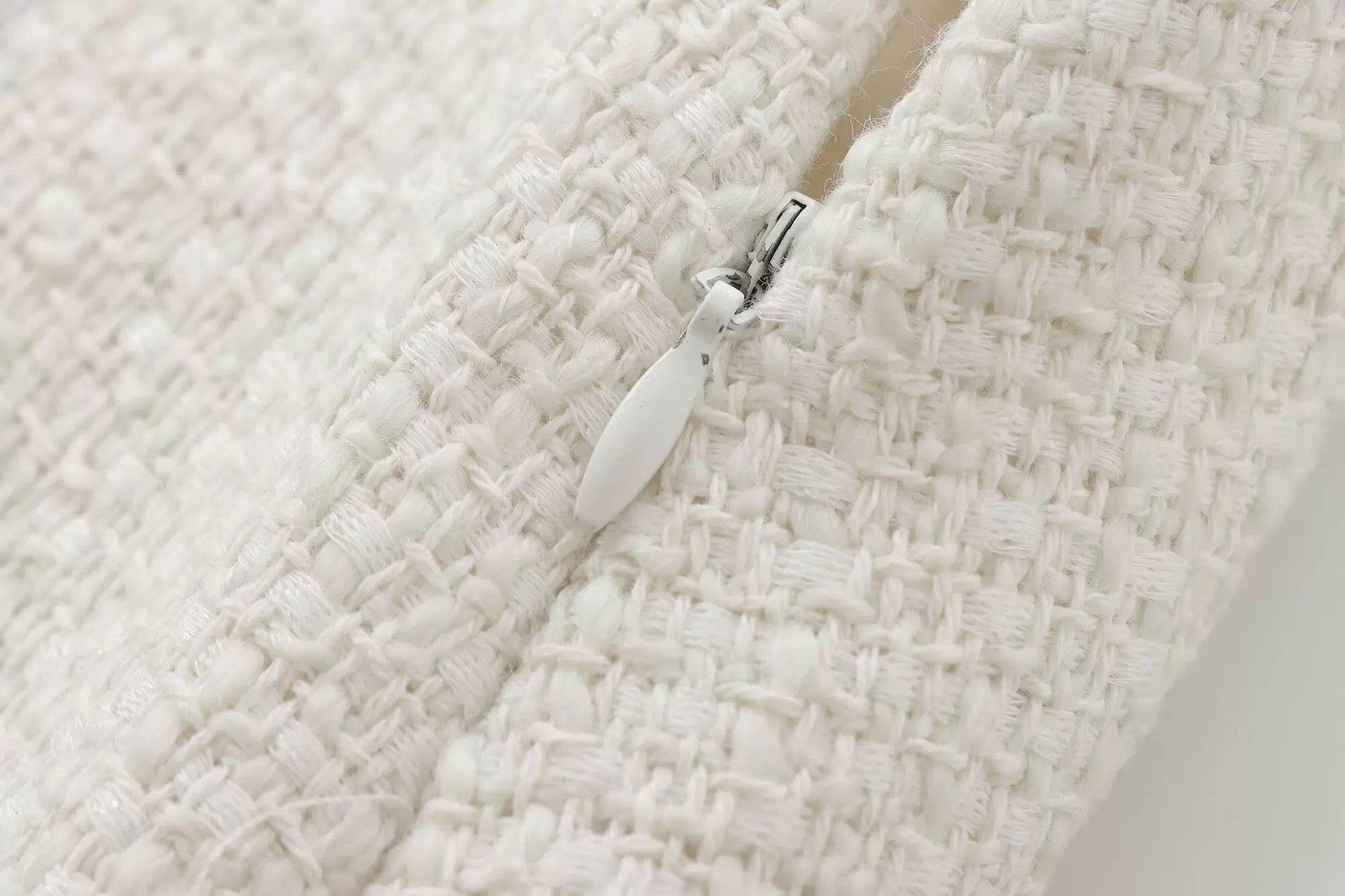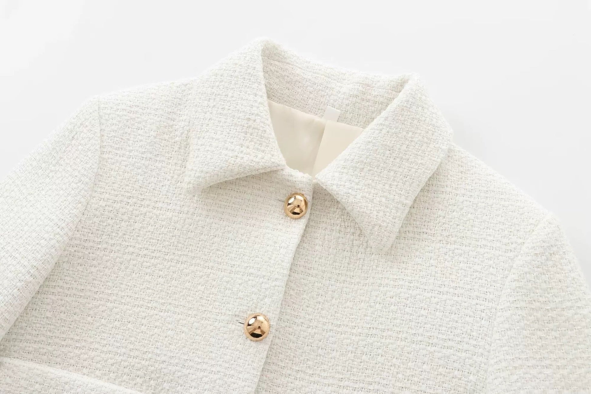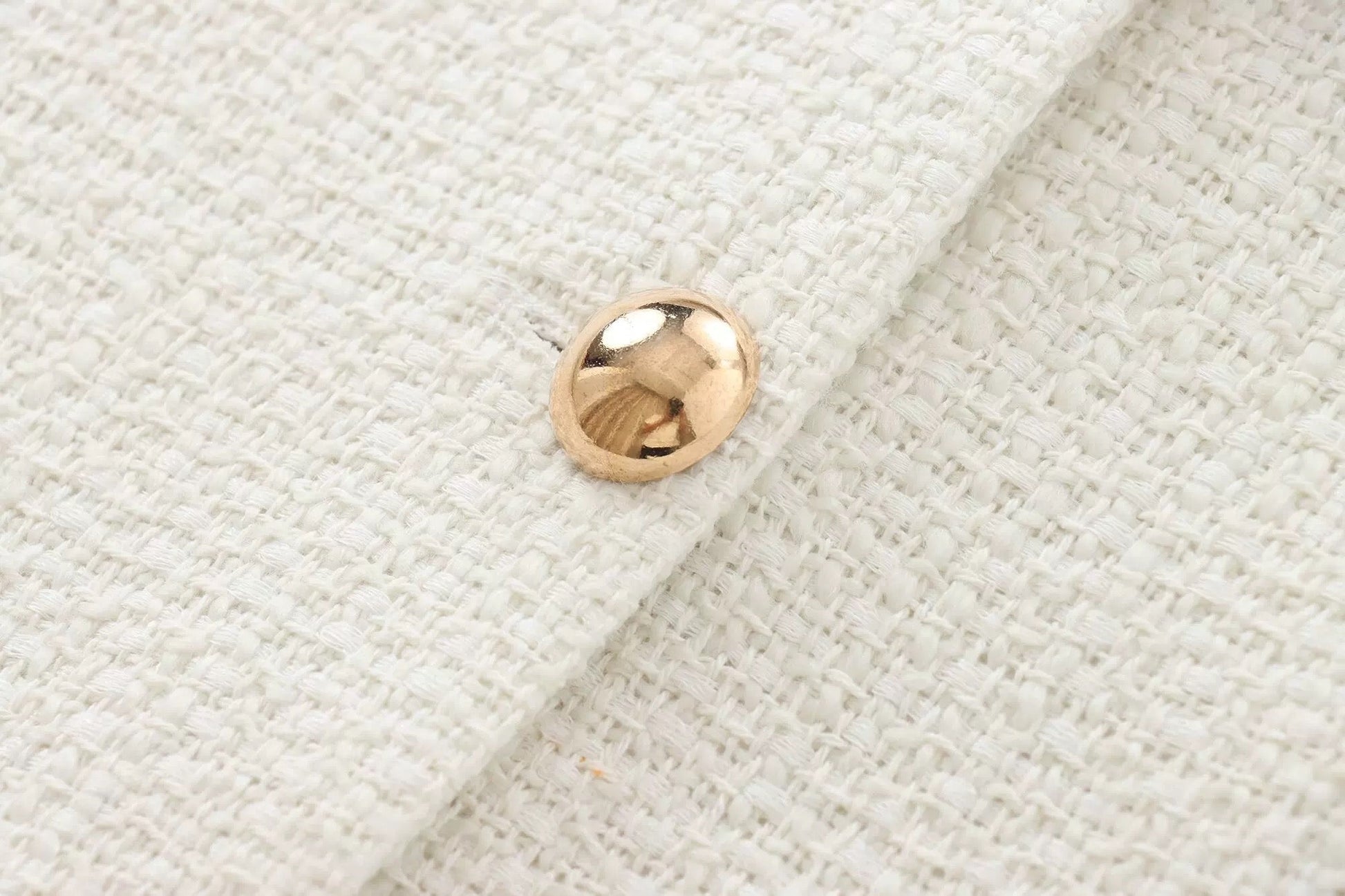 Elegantes Tweed-Jackenkleid Set mit Goldknöpfen