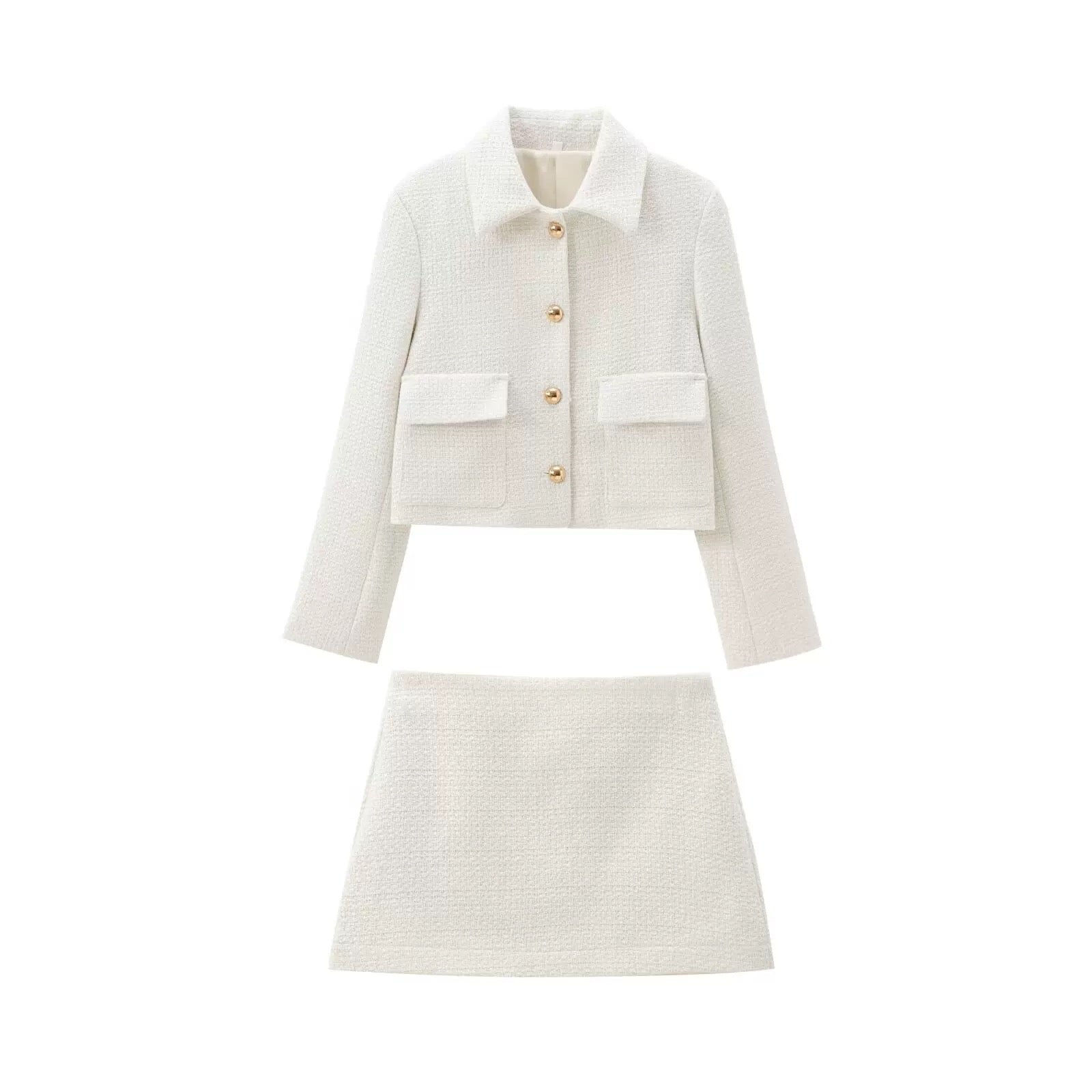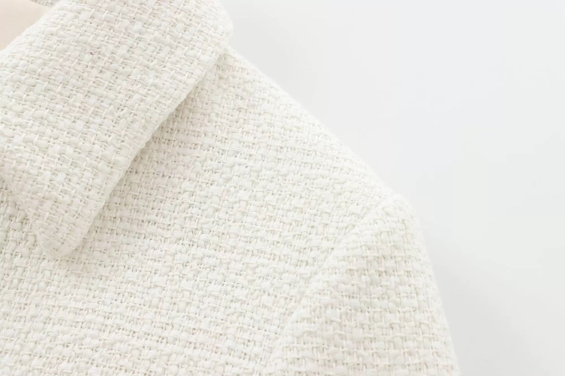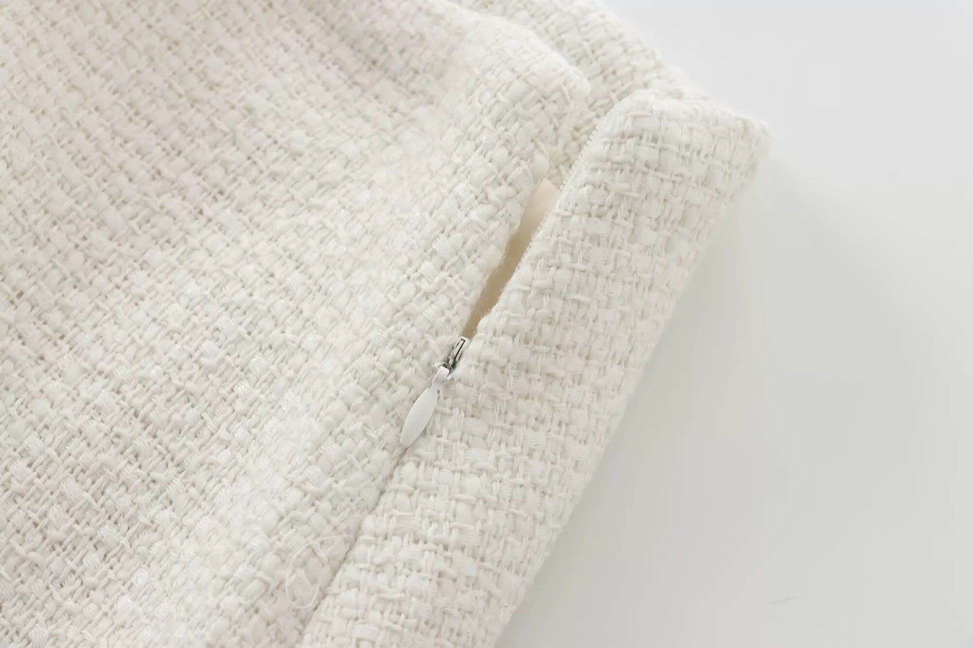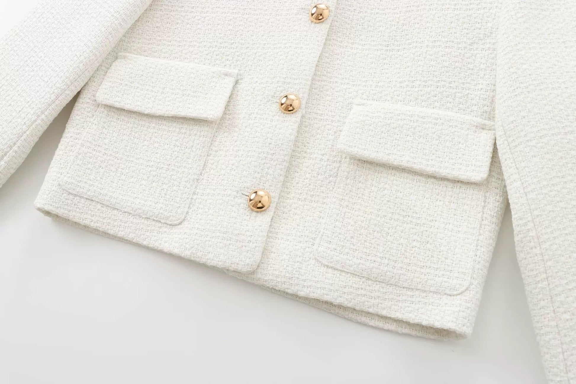 Elegantes Tweed-Jackenkleid Set mit Goldknöpfen