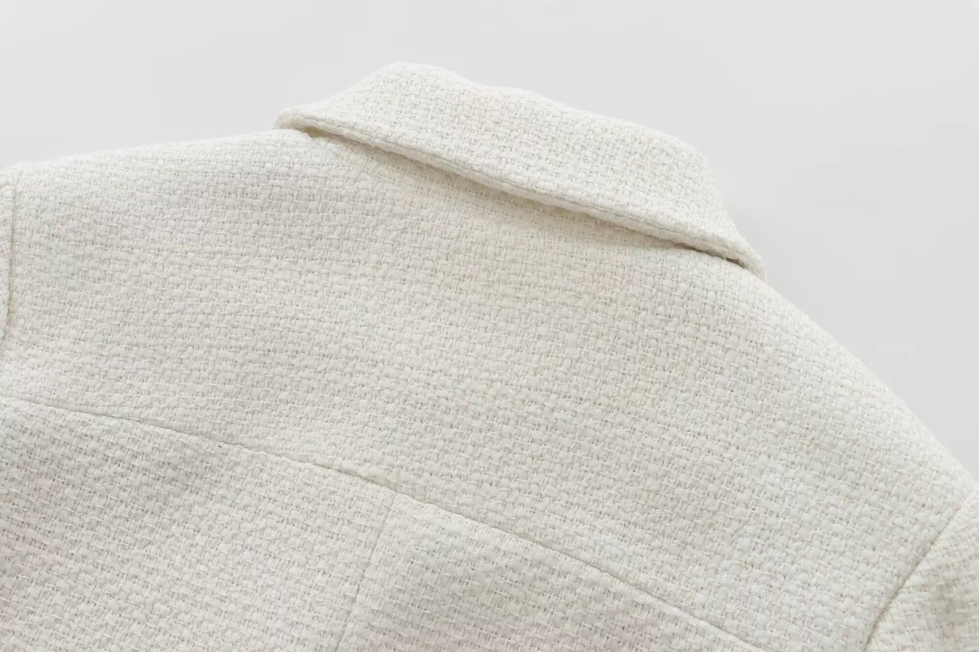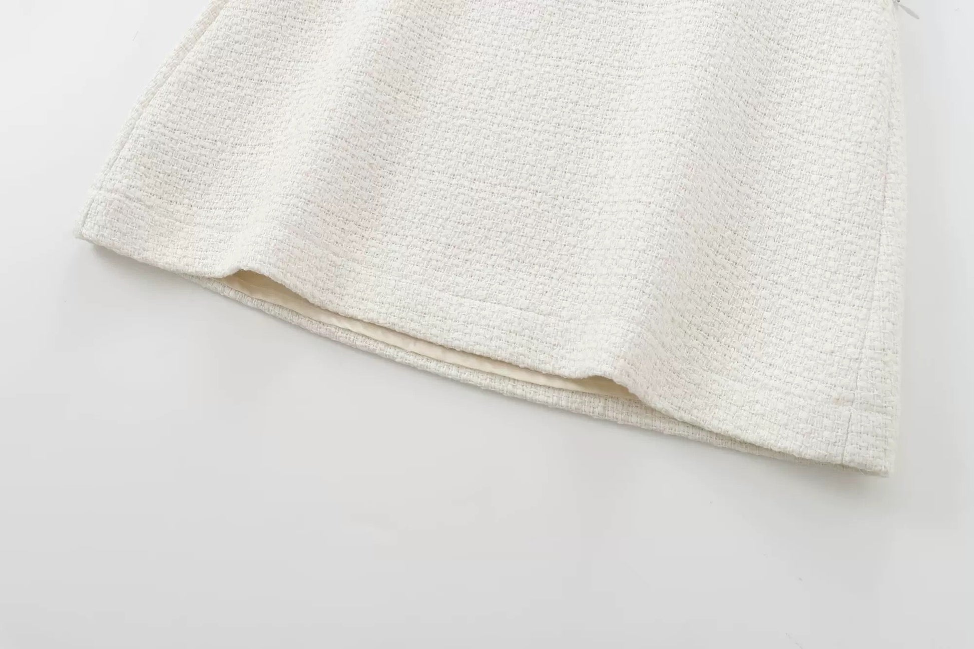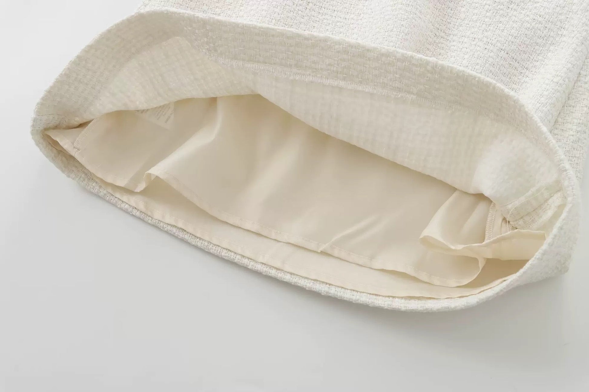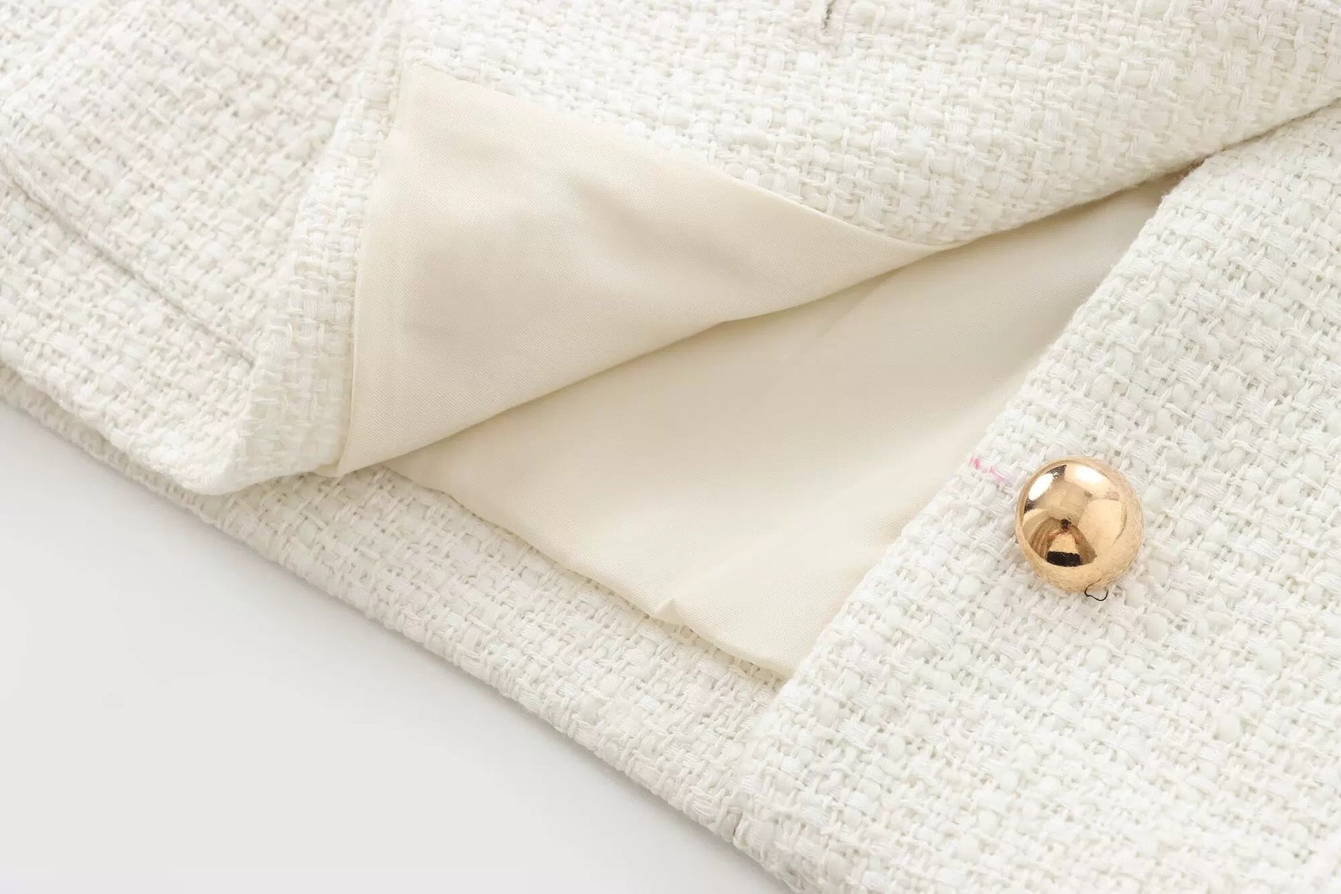 Elegantes Tweed-Jackenkleid Set mit Goldknöpfen