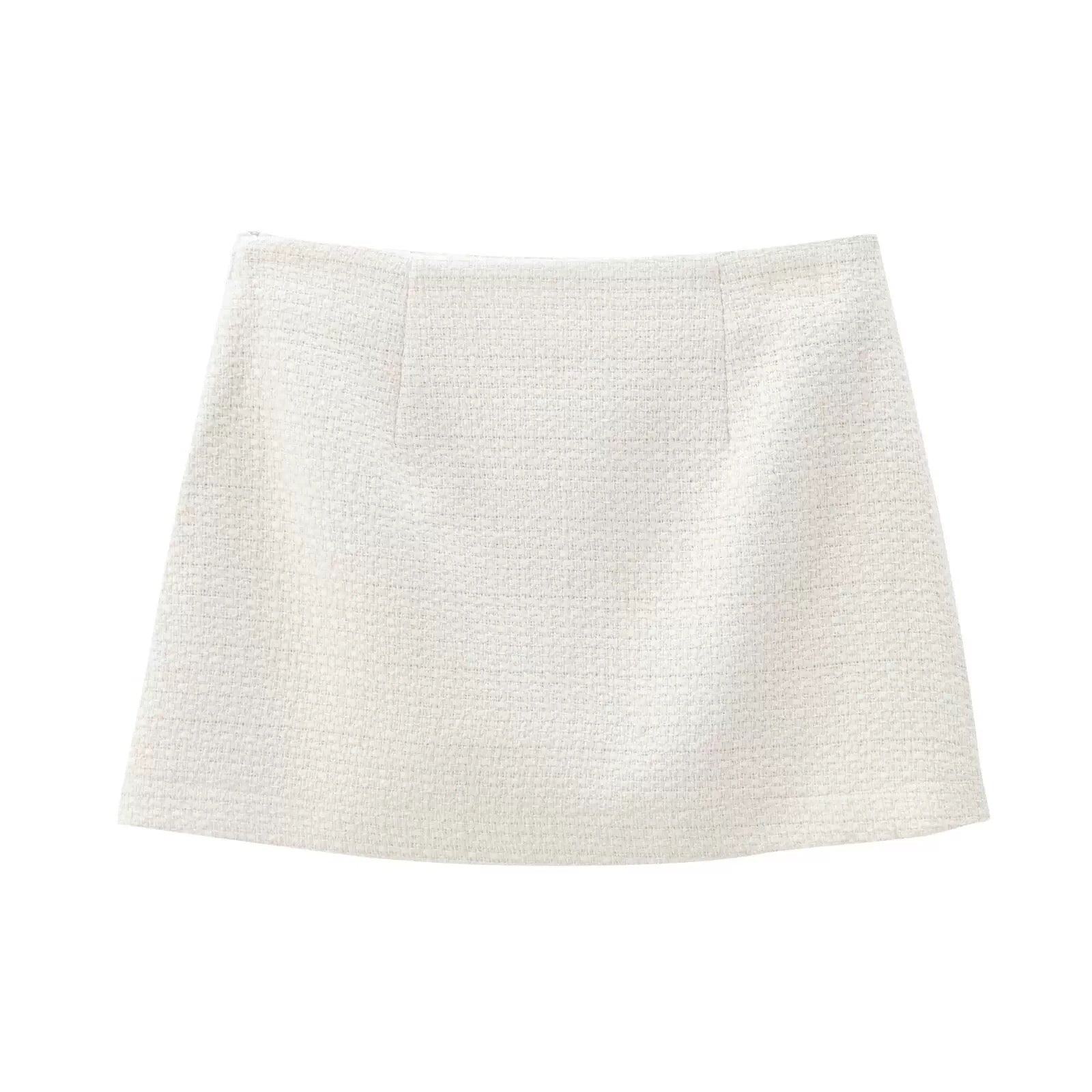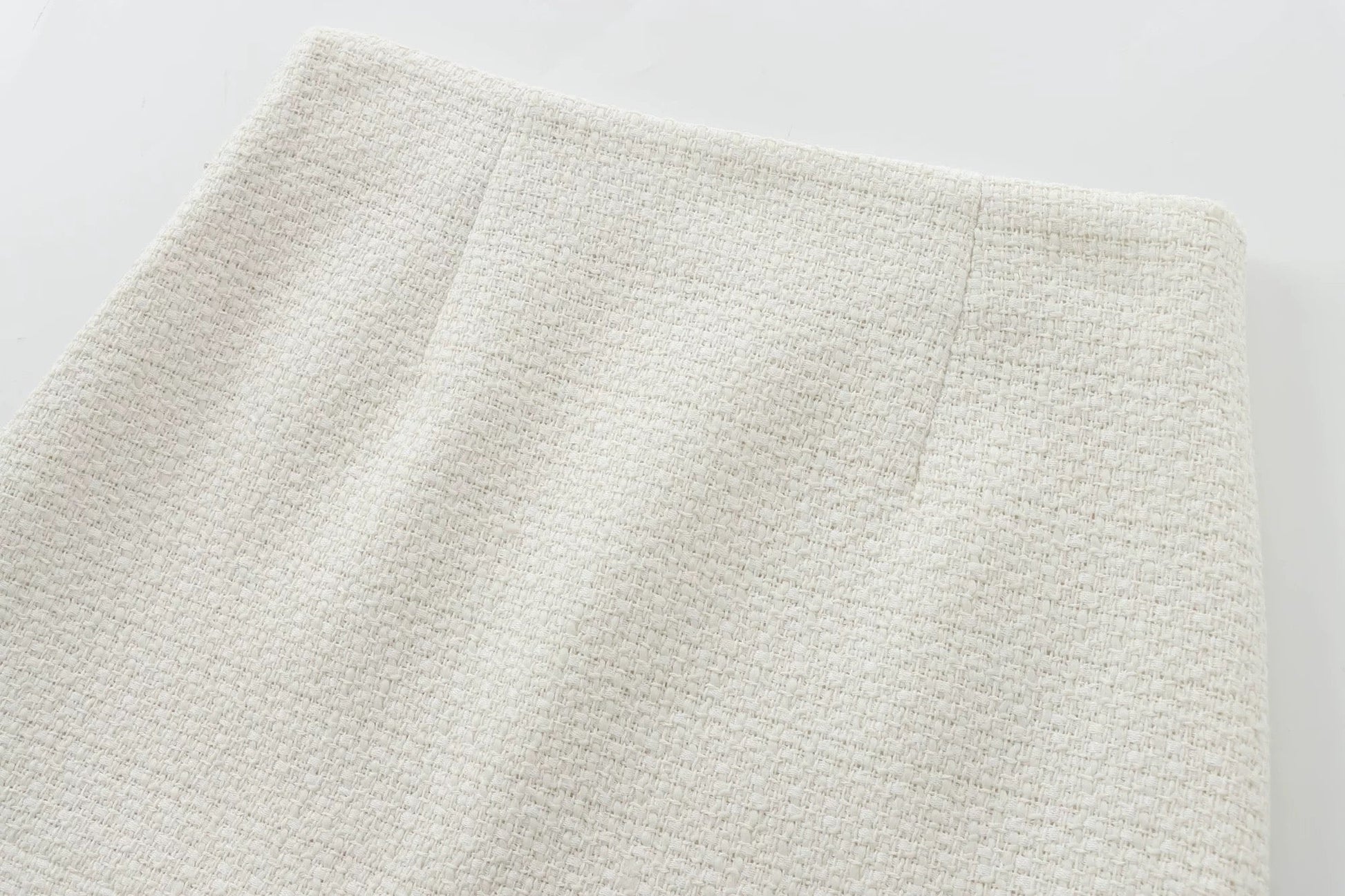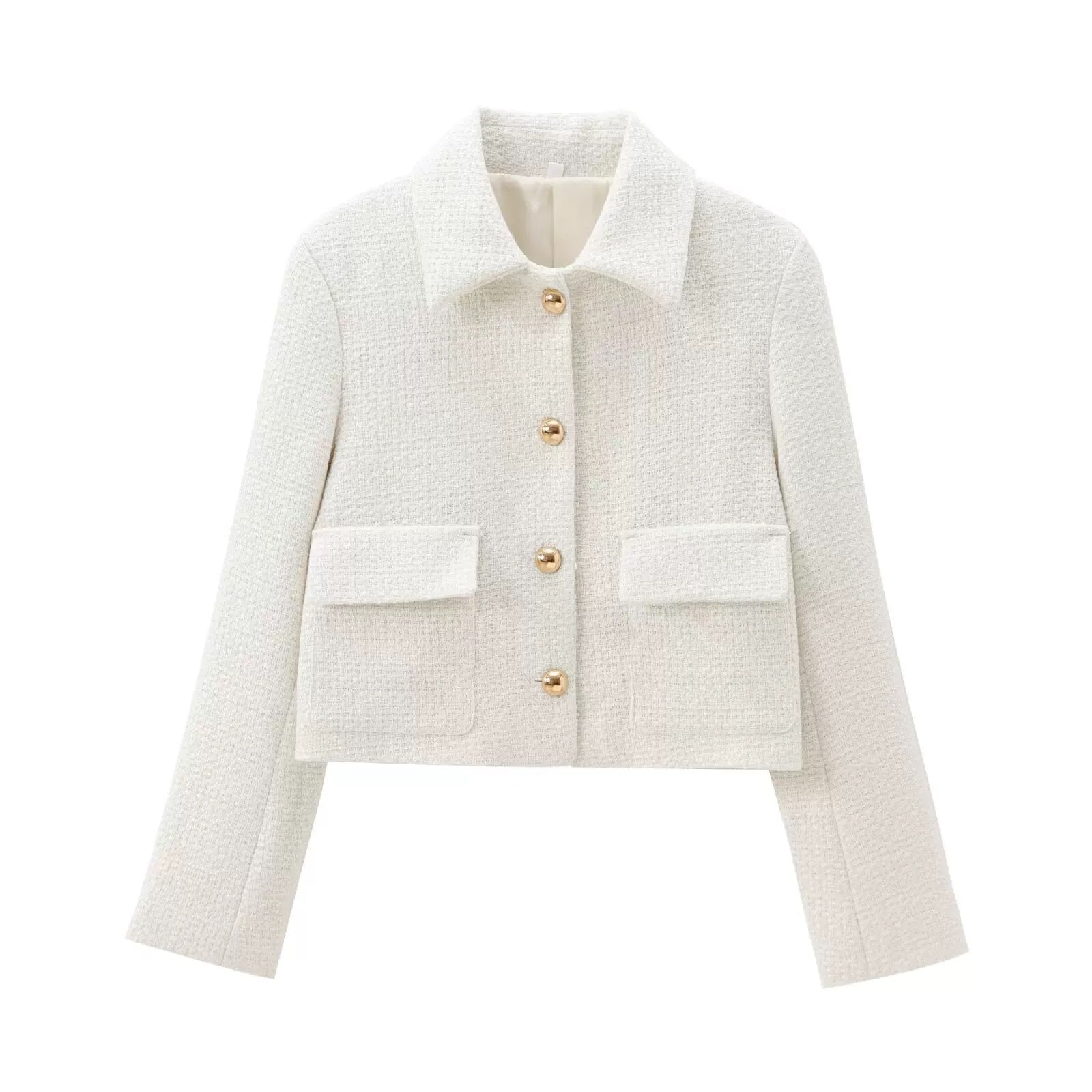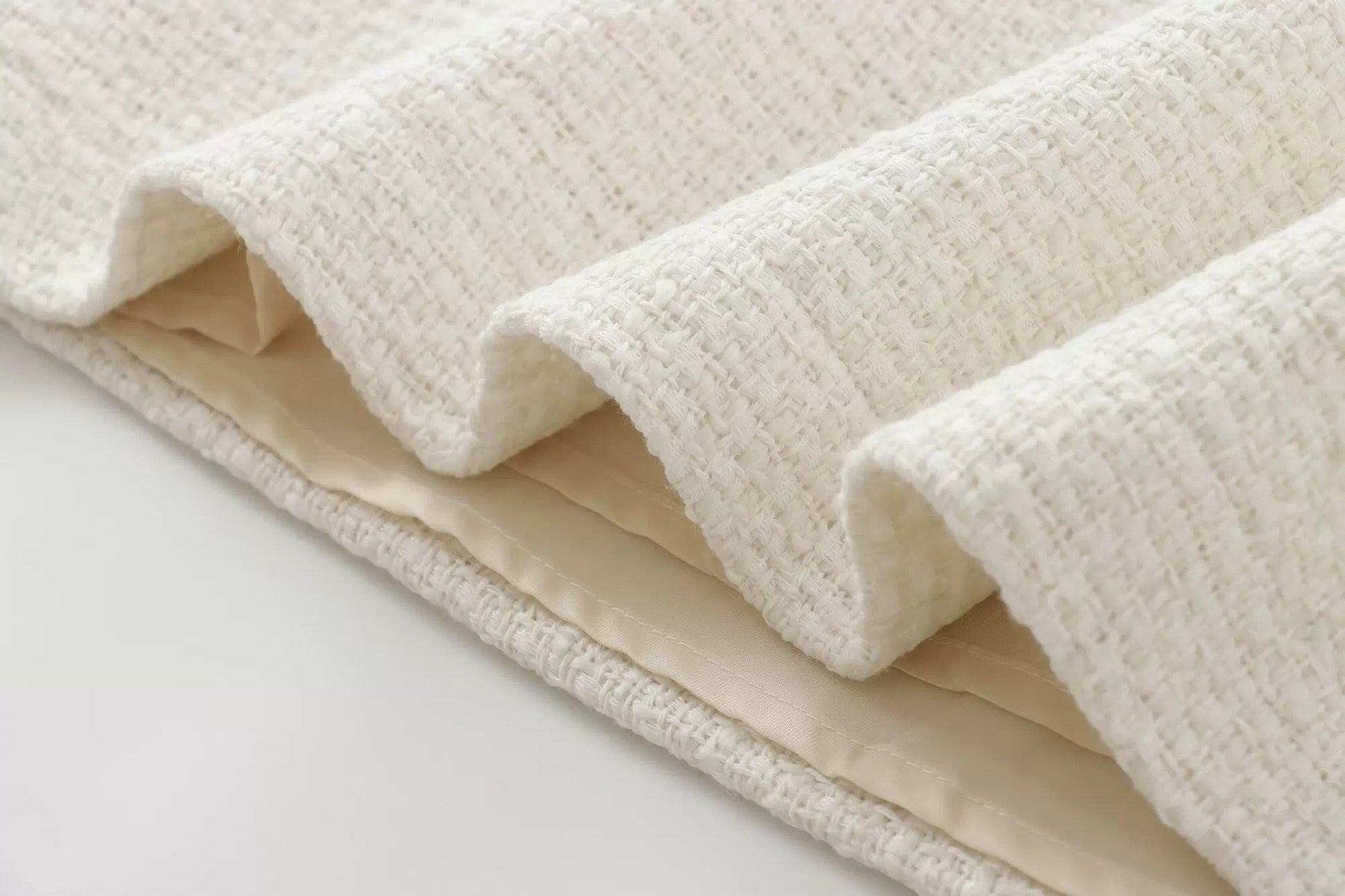 Elegantes Tweed-Jackenkleid Set mit Goldknöpfen