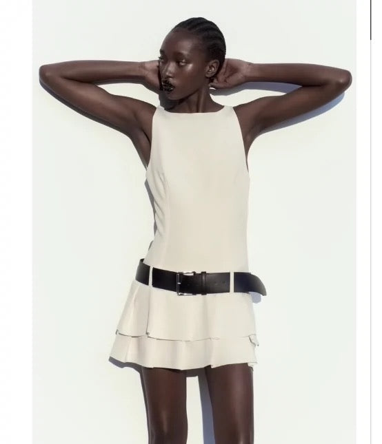 Weißes Kleid mit Gürtel