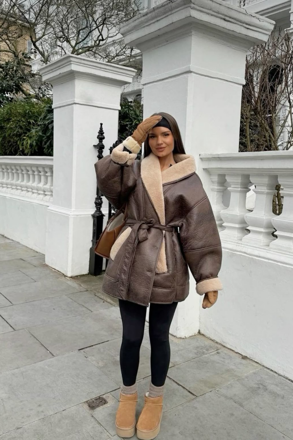 Stylischer Shearling Mantel mit GĂĽrtel đź’«